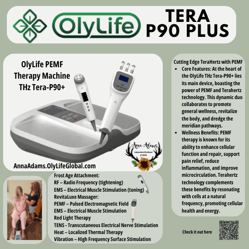 I will have my NEW OlyLIFE PEMF Therapy Machine THz Tera-P90+ , OlyLife Galaxy G-One Eye, Vitality Wand, H+ Molecular Hydrogen Infuser with MRET Technology, Bama A9 Anion Generator devices with me, and will be doing demos for anyone that wants to try them out. Follow my Link to OLYLIFE and there's tons of info on what each device does to support the body. The website only touchs the tip of what these devices can help with... (No more having to go to a specialist to get the PEMF & TERAHERTZ therapy! Thank you sweet Jesus)❤️ Don't like to read? Then ask for the video that explains how each device works.